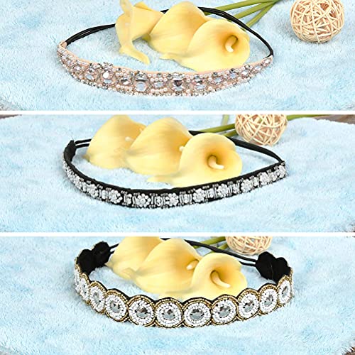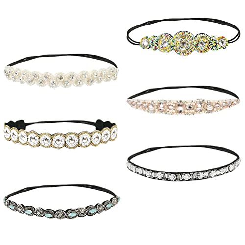 YOTIN 6 Pezzi Fasce Elastiche di Strass per Capelli Donna Vintage, Cerchietti per Capelli con Cristallo e Strass (6 Stili)