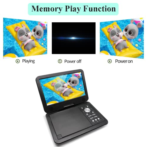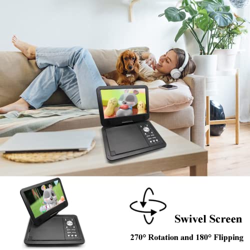 YOTON Lettore DVD Portatile da 12,5" con Schermo Girevole HD da 10,5" per Auto e Bambini, con Caricatore per Auto, Supporta 6 Ore di Batteria Integrata e USB/scheda SD/sincronizzazione TV