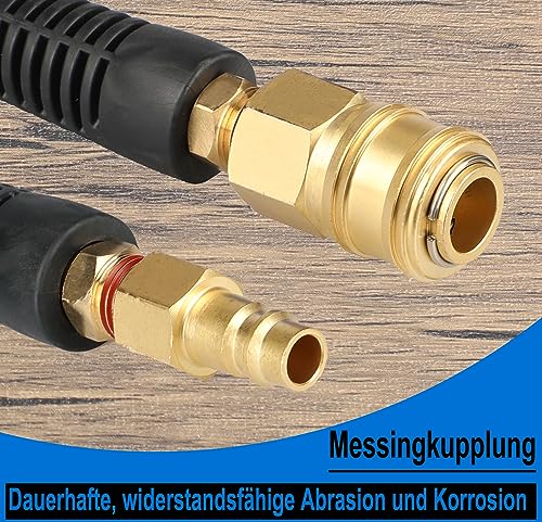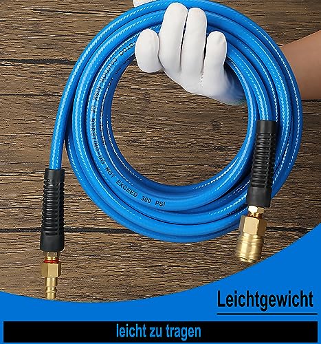 YOTOO Tubo per aria compressa ibrido 15 m di lunghezza 6 mm ID x 11 mm AD, 300 PSI con connettori a sgancio rapido Germania da 1/4", limitatore di flessione