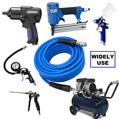 YOTOO - Tubo per aria in PVC da 3/8" da 33 m, 300 psi, con raccordi rapidi in acciaio da 1/4" e limitatori di piegatura per carichi pesanti, flessibile a tutte le condizioni atmosferiche, colore blu
