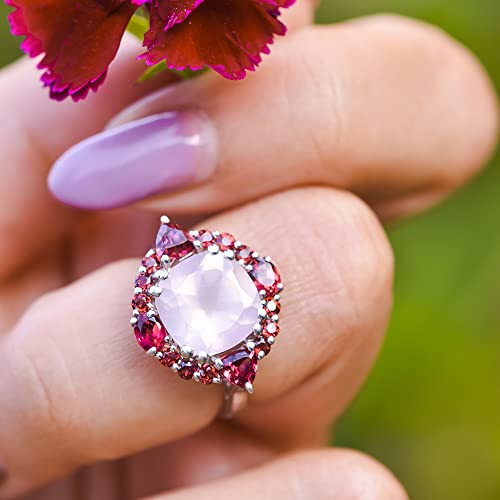 YoTreasure 5.65 ct. t.w. Anello a grappolo in argento sterling 925 massiccio di rodolite al quarzo rosa, Pietra Pietra metallo, Quarzo rosa