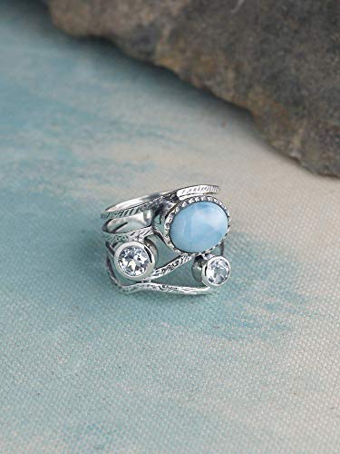 YoTreasure Larimar & Blue Topaz - Anello in argento sterling 925 con tre pietre, Pietra, Larimar