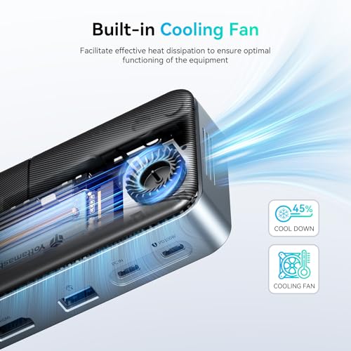 Yottamaster USB C Hub Case SSD M2, Docking Station USB 3.2 Gen2 10 in 1 10 Gbps 4K@60 Hz HDMI, PD 100 W, Lettore di schede SD/TF3.0, Ethernet, Supporto 8TB 2230/2242/2260/2280 SSD per Windows, Mac