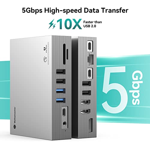 Yottamaster USB C Dock Per M1/M2 MacBook Pro/Air, 15 in 1 Displaylink Docking Station Dual Monitor Multiport Adapter Con Dual 4K HDMI, 8 USB Ports, DP, 100W PD, RJ45, 3,5mm Audio, TF/SD, Argento