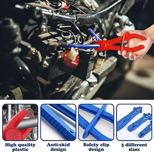 【Funzione pratica】 Il set di pinze per tubi flessibili è in un accattivante colore blu e rosso, facile da distinguere. L'impugnatura ha un design unico con slot per schede, comodo e antiscivolo per il posizionamento delle schede. Il set di pinze stringitubo è leggero, comodo e veloce da usare.