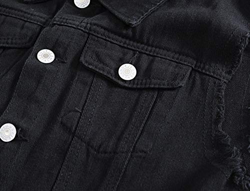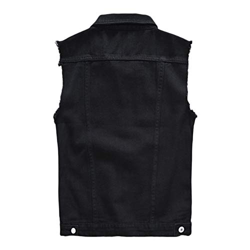 YOUCAI Gilet Denim Uomo Giubbotto Smanicato Jeans Giacca Senza Maniche Denim Vest Panciotto Gilet Slim Fit Aderente Giacca Jeans Capispalla,Nero,XS