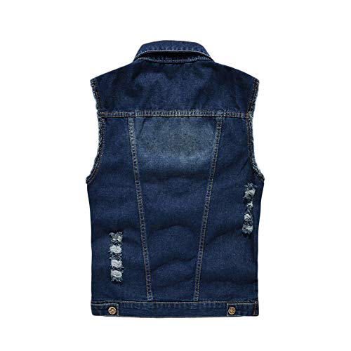 YOUCAI Gilet per Uomo Vintage Strappato Gilet di Jeans Giubbotto Smanicato Jeans Giacca Senza Maniche Denim Vest Denim Giacca,Blu4,L