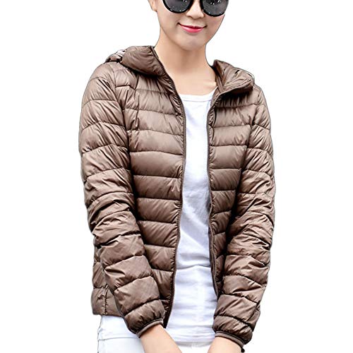 YOUCAI Piumino Leggero Donna con Cappuccio Ultraleggeri Slim Giacche di Imbottito Slim Fit Capispalla Corto Giacca Primaverile Invernale,Cachi,S