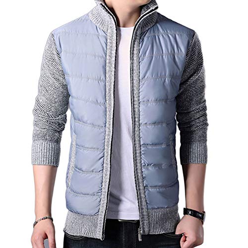 YOUCAI Uomo Cardigan con Collo Alto Giacca in Maglia Casuale Cappotti Foderato in Falso Pile Autunno Inverno Giacca Manica Lunga Maglione in Caldo,Grigio Chiaro,M