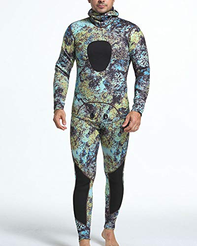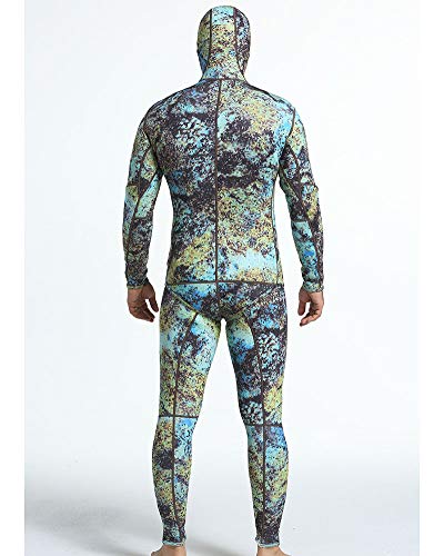 YOUCAI Uomo 3mm Neoprene Muta da Sub Inverno Caldo Manica Lunga Camo Salopette e Giacca con Cappuccio per Apnea e Pesca Subacquea MY047Two3mm XL