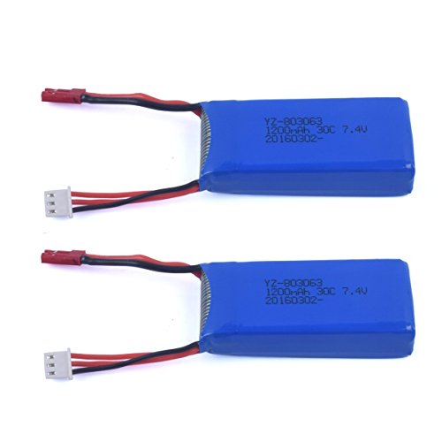 YouCute Caricabatterie 1to2 e 2 batterie dei pc 7.4V 1200mAh per Rayline R10 R809V, JJRC H16, Tarantula Yizhan X6, Quadcopter RC parte Accessori (2 batterie + caricabatterie)