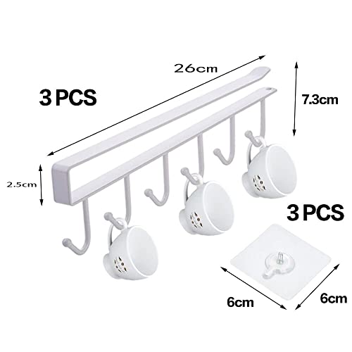 YOUDALIS 3Pezzi Porta Tazze,Ganci Portabicchieri,Mug Deposito Ganci Portatazze con 3 Viti Adesive,Portatazze Sotto Armadietto,Cucina Utensil Appeso,Senza Foratura (Bianco)