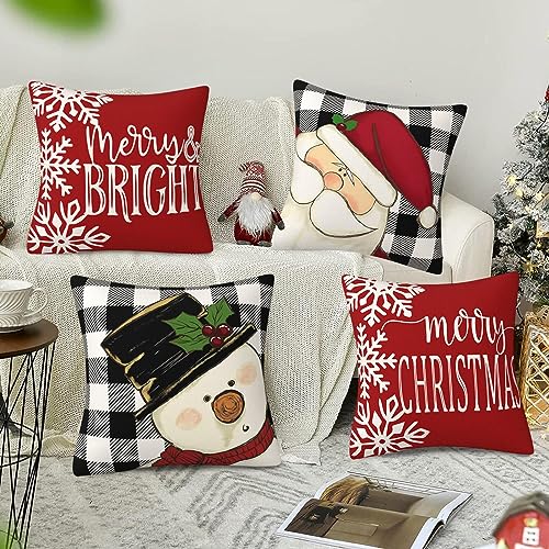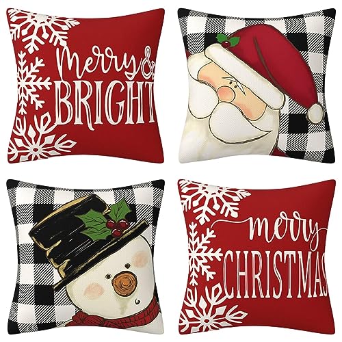 Youding Federa natalizia - Federa quadrata con cerniera personalizzata | Fodera per cuscino natalizio con Babbo Natale da 4 pezzi, fodere per cuscino con decorazioni natalizie con Babbo Natale