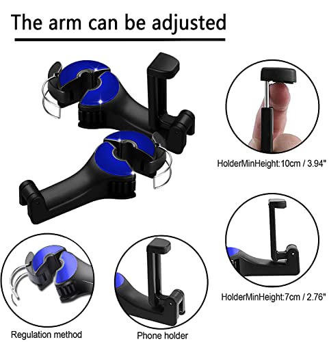 Youery 2 Pezzi Ganci per Seggiolino Auto Posteriore con Supporto per Cellulare, Ganci per Seggiolino Auto con Rotazione 360°, Ganci per Auto con Montaggio su Poggiatesta (Blu)