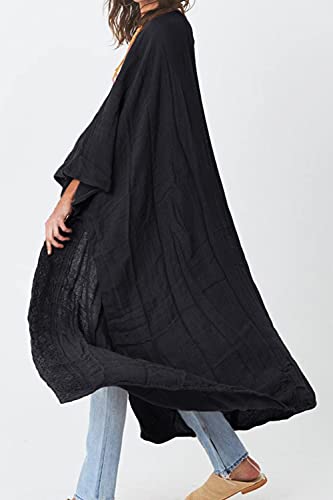 YouKD Vestito lungo da donna, stile boho, kimono, taglia L, cardigan da spiaggia, copricostume da bagno, D nero, Etichettalia unica