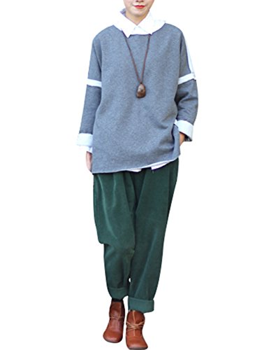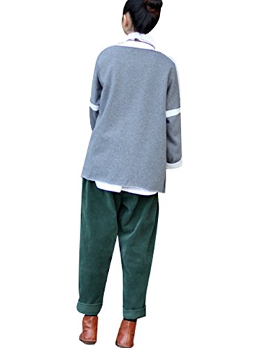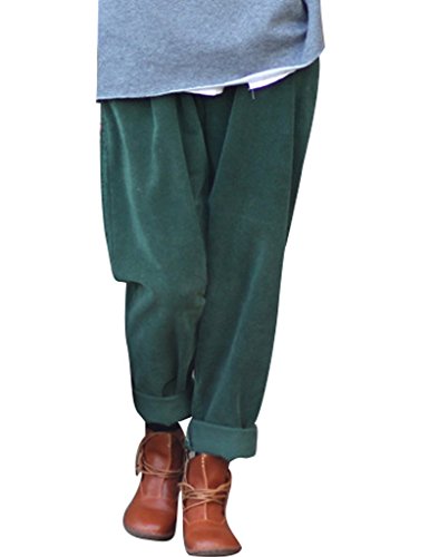 Youlee Donna Elastico Vita Velluto a Coste Pantaloni con Tasche Verde Scuro