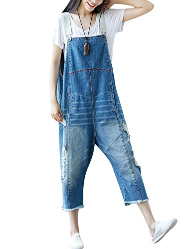 Youlee Donna Gamba Larga Tute di Jeans Salopette Casual retrò Style 4 Light Blue