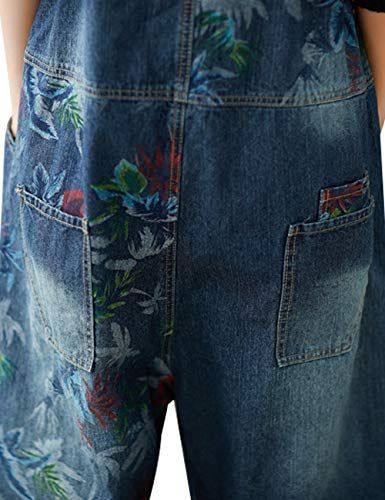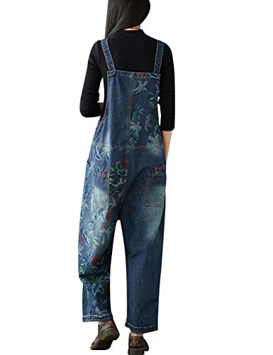 Youlee Donna Gamba Larga Tute di Jeans Salopette Casual retrò Style 3 Dark Blue