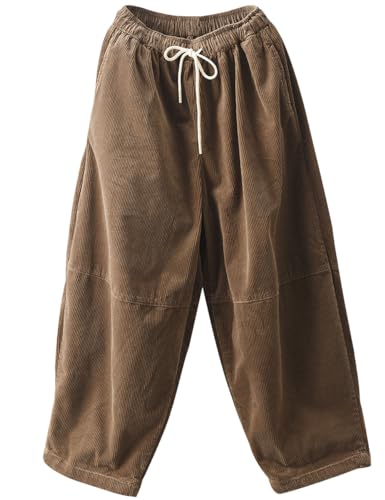 Youlee Donna Tasche Anteriori Vita Elastica Cotone Corduroy Pantaloni Style 1 Coffee