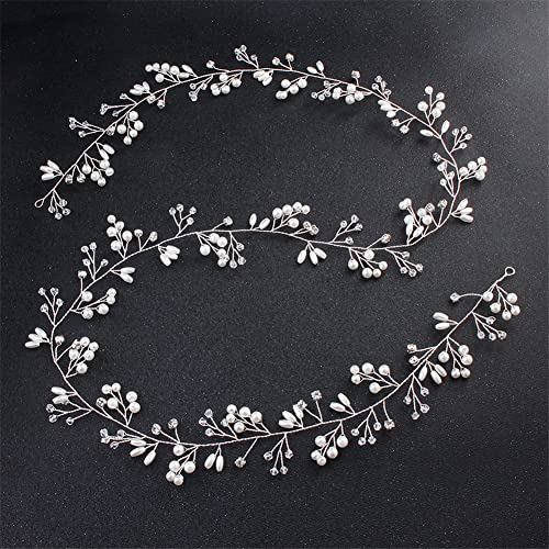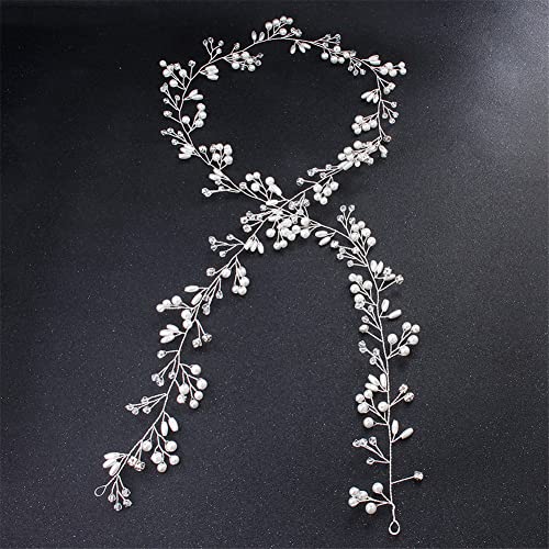 Youllyuu Perla lunga fascia da donna per capelli da sposa con perle strass gioielli per capelli da sposa 50/100/150 cm