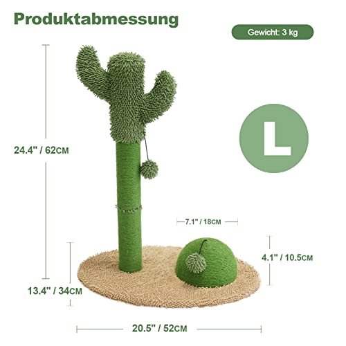 Design carino: questo prodotto ha un albero tiragraffi e una ciotola in sisal. La simpatica forma a cactus si integra in qualsiasi stile di arredamento del soggiorno. Più superficie per coprire il sisal è buona per la salute delle zampe del vostro gatto.