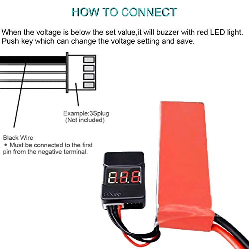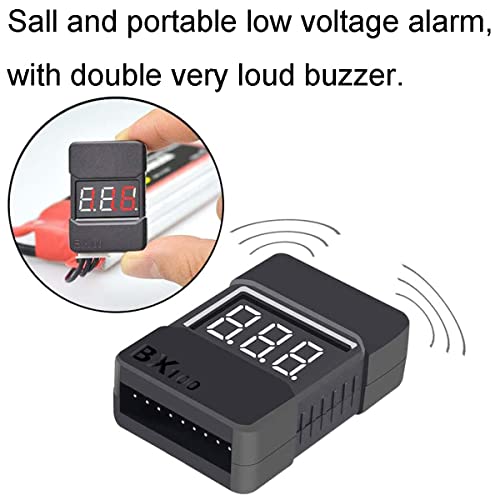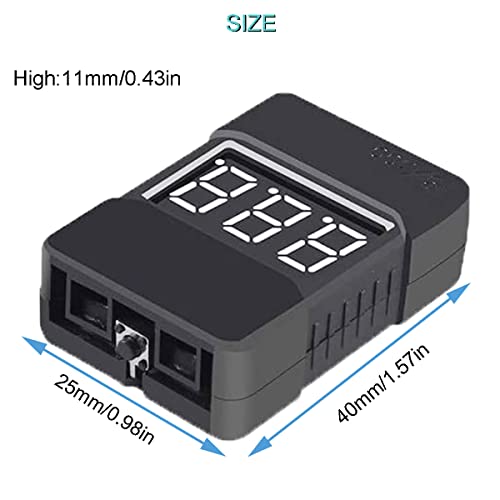 【Design】: modalità di allarme di bassa tensione per 1-8S, funzione di controllo della tensione delle celle lipo, con display a LED, carattere ampio e chiaro con suono forte, design compatto, facile da trasportare e collegare