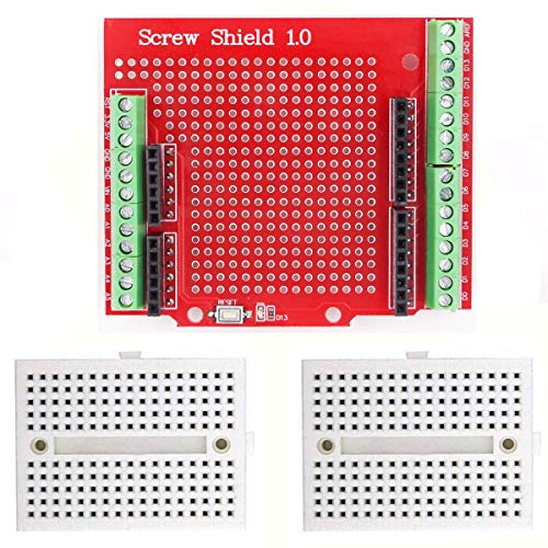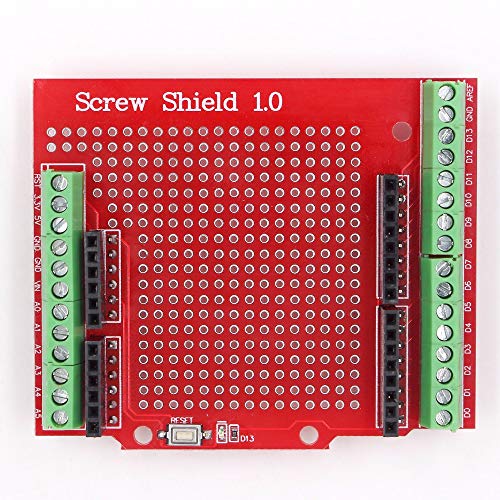 【Può collegare lo scudo a vite nell'Arduino】 Ha dei piedini nella parte inferiore che corrispondono ai connettori femmina su un Arduino in modo da poter collegare questo scudo nell'Arduino. Una volta collegato. È molto sicuro e si adatta perfettamente, quindi non si stacca molto facilmente