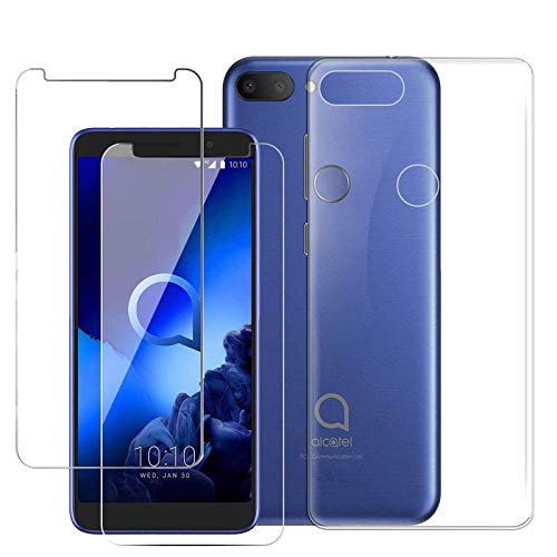 Young & Min Cover per Alcatel 1S 2019 + Pellicola Vetro Temperato, Custodia Sottile Silicone TPU Bumper Case Antiurto Antigraffi Case Cover per Alcatel 1S 2019, Trasparente