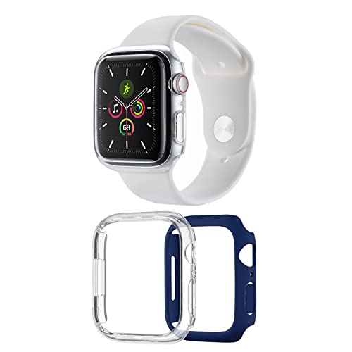 Young & Ming Compatibile con Apple Watch 41mm Series 8/Series 7 Custodia, [2 Pack] Cover Rigida PC [Senza Protezione per Lo Schermo] Anti-graffio e Anti-Goccia Case,Blu+Trasparente