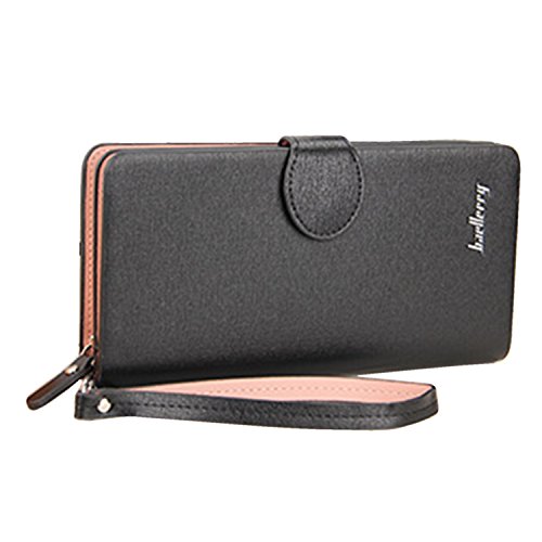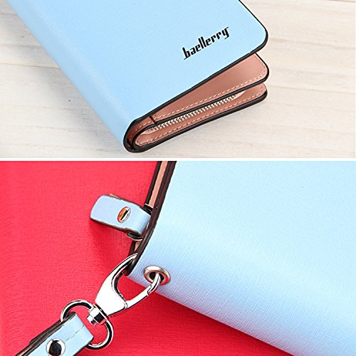 Young & Ming - Grande compacity Women Donna Portafogli in pell Leather Wallet Handbag Borse a mano con 12 slot per schede with Tasche con cerniera per iPhone e smartphone con 1 cinghia di cuoio