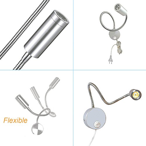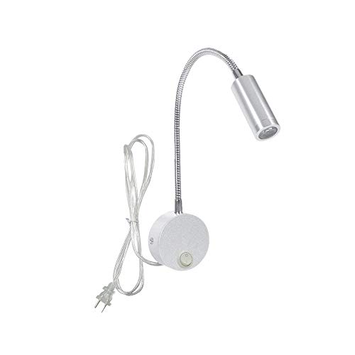 Youngine 3W flessibile a collo di cigno applique da parete lampada da lettura luce mostra accento luce montaggio a parete spot lampada apparecchio con interruttore on / off (argento caldo bianco)