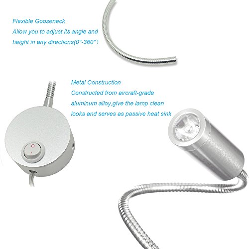 Pelle d' oca flessibile: 30 cm/12 inch, 360 gradi direzione della luce regolabile, in grado di girare e ruotare per l' angolo di illuminazione - -- desiderata siete un bel ambiente, luce verso il basso per leggere, senza disturbare nessuno