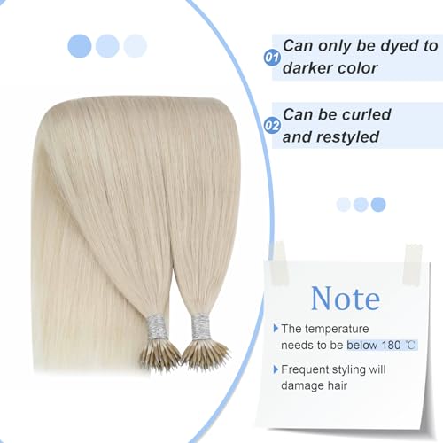 YoungSee Nano Ring Extension Capelli Veri Biondo 60 cm Extension Nano Ring Capelli Estensioni Di Capelli Nanoring Lisce Come La Seta Nano Ring Hair Extensions Biondo Platino 50g/50s #60A