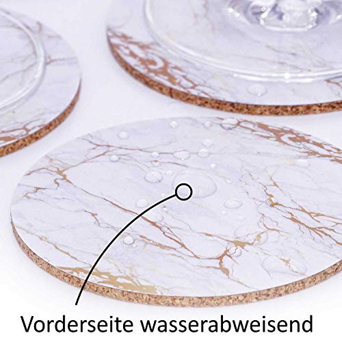 Younikat dv_706 - Set di 4 sottobicchieri in sughero effetto marmo, rotondi, facili da pulire, antiscivolo