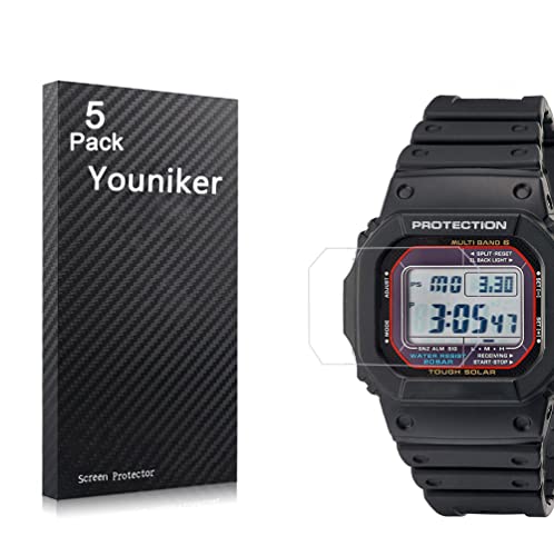 Youniker Confezione da 5 pellicole protettive per schermo da uomo Casio G-shock GWM5610, compatibili con Casio GW-M5610, trasparenti HD antigraffio