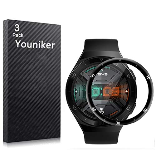 Youniker - Pellicola proteggi schermo per Huawei Watch GT 2e, 3 pezzi, per Huawei Watch GT 2e Smartwatch, pellicola protettiva 3D a copertura completa dello schermo, trasparente HD, antigraffio