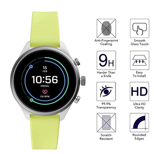 Youniker - Pellicola proteggi schermo in vetro temperato per Fossil Sport, 41 mm 2018, per Fossil Women's Gen 4 Sport, 41 mm, 9 H, 0,3 mm, anti-graffio, anti-impronte, senza bolle