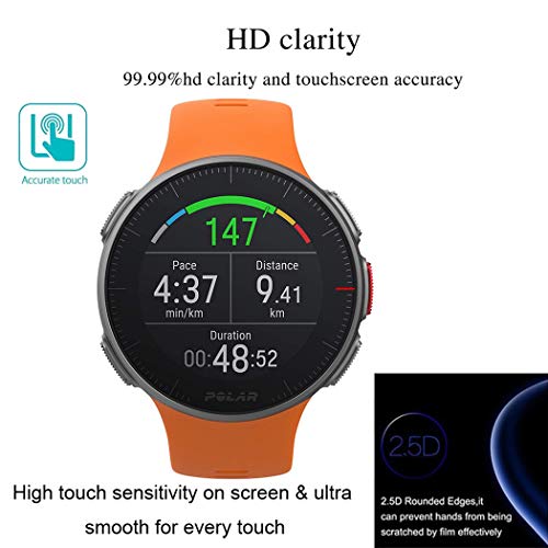 Sensibilità al tocco: lo spessore ultra sottile di 0,3 mm è affidabile e resistente, la pellicola protettiva in vetro temperato Youniker per smartwatch Polar vantage V, sensibilità al tocco reale per una sensazione naturale che fornisce una precisione impeccabile del touch screen.