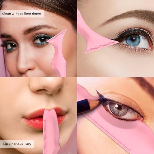 Diversi design curvi: i nostri stencil per eyeliner occhi sono progettati in modo ergonomico. Sono progettati con diversi angoli di curvatura per le diverse aree dell'occhio e uno ha una scala per aiutarvi a completare facilmente e rapidamente l'eyeliner, la matita per sopracciglia, l'ombretto, il pennello del mascara e il trucco. Per soddisfare le vostre esigenze di make-up più esigenti.