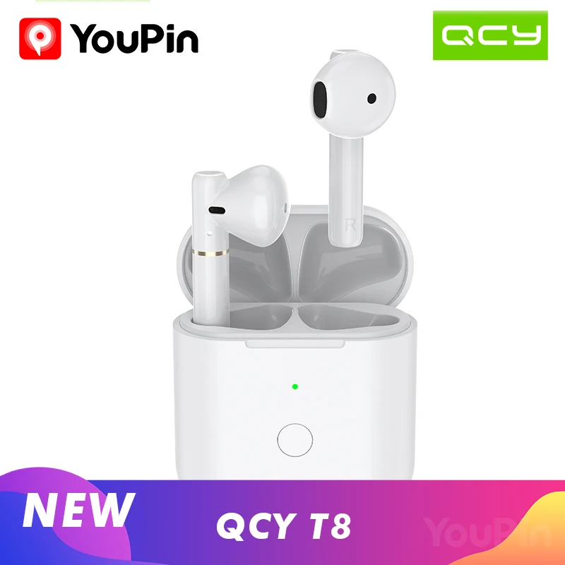 YouPin QCY T8 wireless bluetooth headset binaural semi-in-ear sports running car call with long battery life