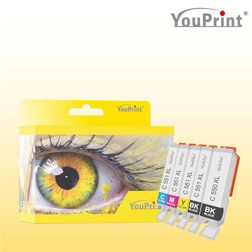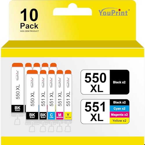 Youprint YP-PGI550XL YP-CLI551XL Ink Cartridges with Chip and Ink Level Display for Canon Pixma iP7250, MG5450, MG6350, MX725, MX925, Compatible with PGI550BK, CLI551C, CLI551M, CLI551Y and CLI551BK (Pack of 10)