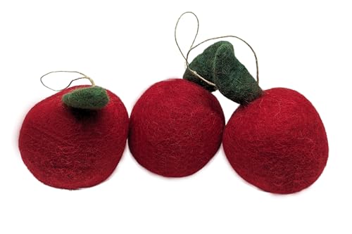Your castle 3 mele in formato originale (7 cm) in feltro lavorato a mano con sospensione.Tavolo - Decorazione con mela artificiale in rosso brillante