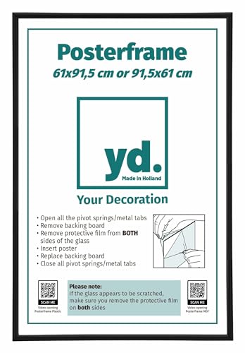 Yd. Your Decoration - Cornice 61x91.5 cm - Cornice poster in plastica con vetro sintetico - antiriflesso - ottima qualità -Nero Opaco - Paris