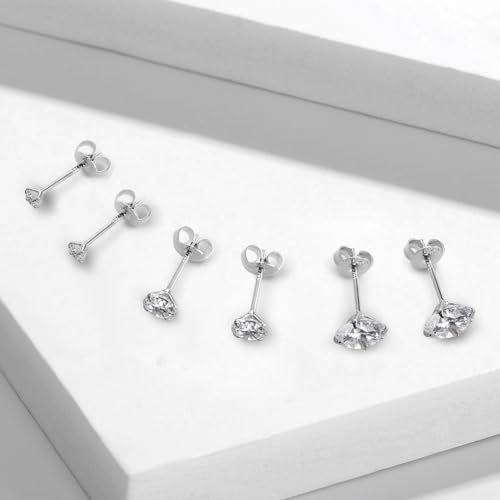 YOURDORA 3 Paia Semplice Orecchini a perno in Argento 925 con Cristalli da Swarovski Donna Gioielli set 3mm 5mm 7mm (White)
