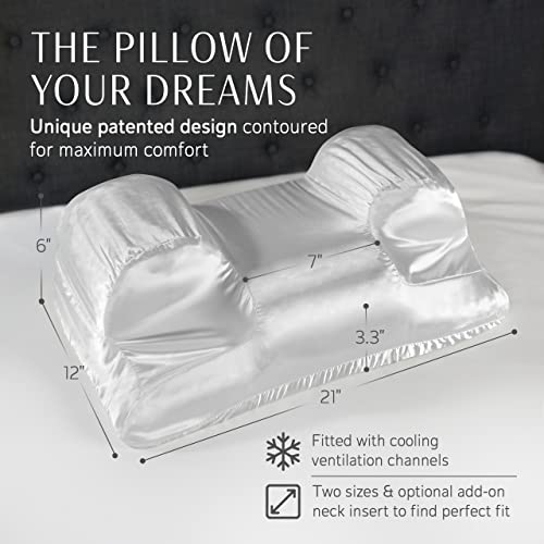 La combinazione definitiva: il cuscino e la federa che usi contano! Combinando il nostro brevettato YourFacePillow e la copertura antimacchia montata, garantirai il miglior sonno di sempre. Una federa in raso ha una consistenza morbida che regola la temperatura e, a differenza del cotone, il raso è più delicato e allontana l'umidità invece di assorbirla. Presto godrai di capelli e pelle più giovani, più sani e vibranti!