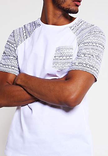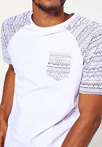 YOURTURN T-Shirt da Uomo Disponibile in Bianco o Grigio con Motivo colorato - T-Shirt Girocollo con Stampa Decorativa - Maglietta a Maniche Corte in Cotone con Taschino sul Petto