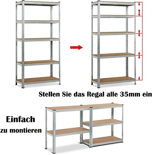 YouseaHome Scaffale Metallo Garage,170CM Robusto Scaffale,5 Ripiani Senza Bullone in Acciaio Laccato Finitura a Polvere,Per Officina, Magazzino, Ufficio,200 x 100 x 50cm,Zincato