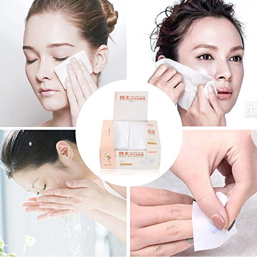 80 salviette cosmetiche struccanti, in cotone che non si sfilaccia, grandi, ideali per la cura della pelle.