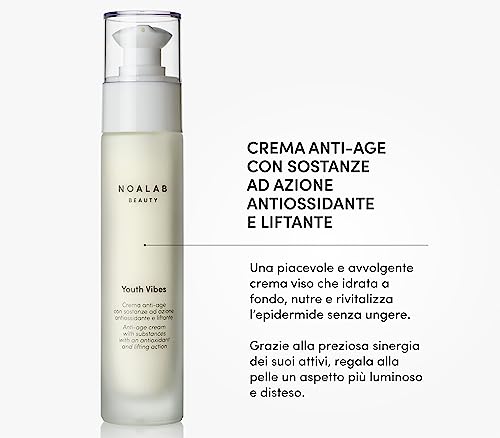 【PARTICOLARITÀ】 Ciascun cosmetico Noalab racchiude più principi attivi, per garantirti più azioni in un unico gesto. Youth Vibes è una piacevole e avvolgente crema viso ad azione anti-age, che idrata a fondo, nutre e rivitalizza l'epidermide senza ungere. Grazie alla preziosa sinergia dei suoi attivi, regala alla pelle un aspetto più luminoso e disteso.