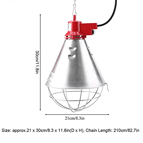 FACILE DA INSTALLARE: la lampada di calore a infrarossi è dotata di catena, facile da regolare la dnza di sospensione. Facile da installare, appendere nel luogo di allevamento, installare la lampadina può essere. Fornisce la giusta temperatura per la crescita di polli e anatre, un accessorio indispensabile per la vostra azienda agricola.